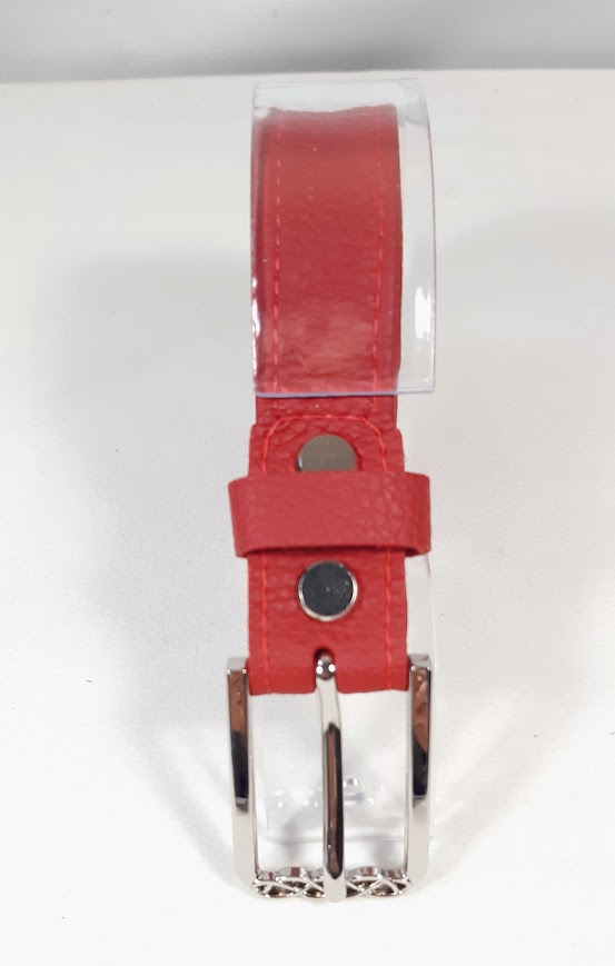 Ceinture en cuir souple de vachette grainé, coloris rouge, tannage minéral.