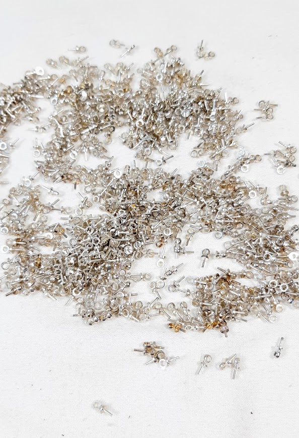 Primeros pasos en la creación de joyas : Lot de 100 attaches pendentif, clous avec oeillet métal coloris argent.